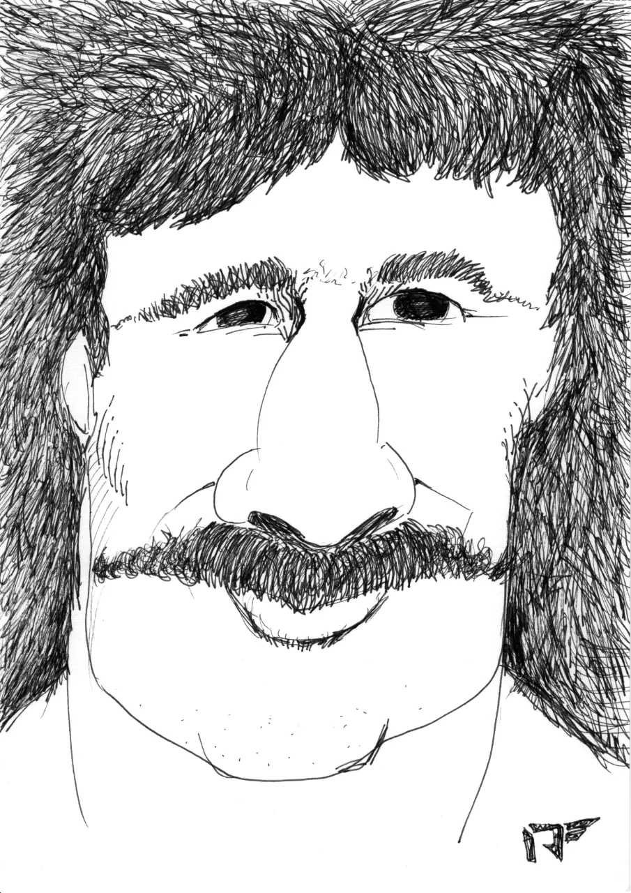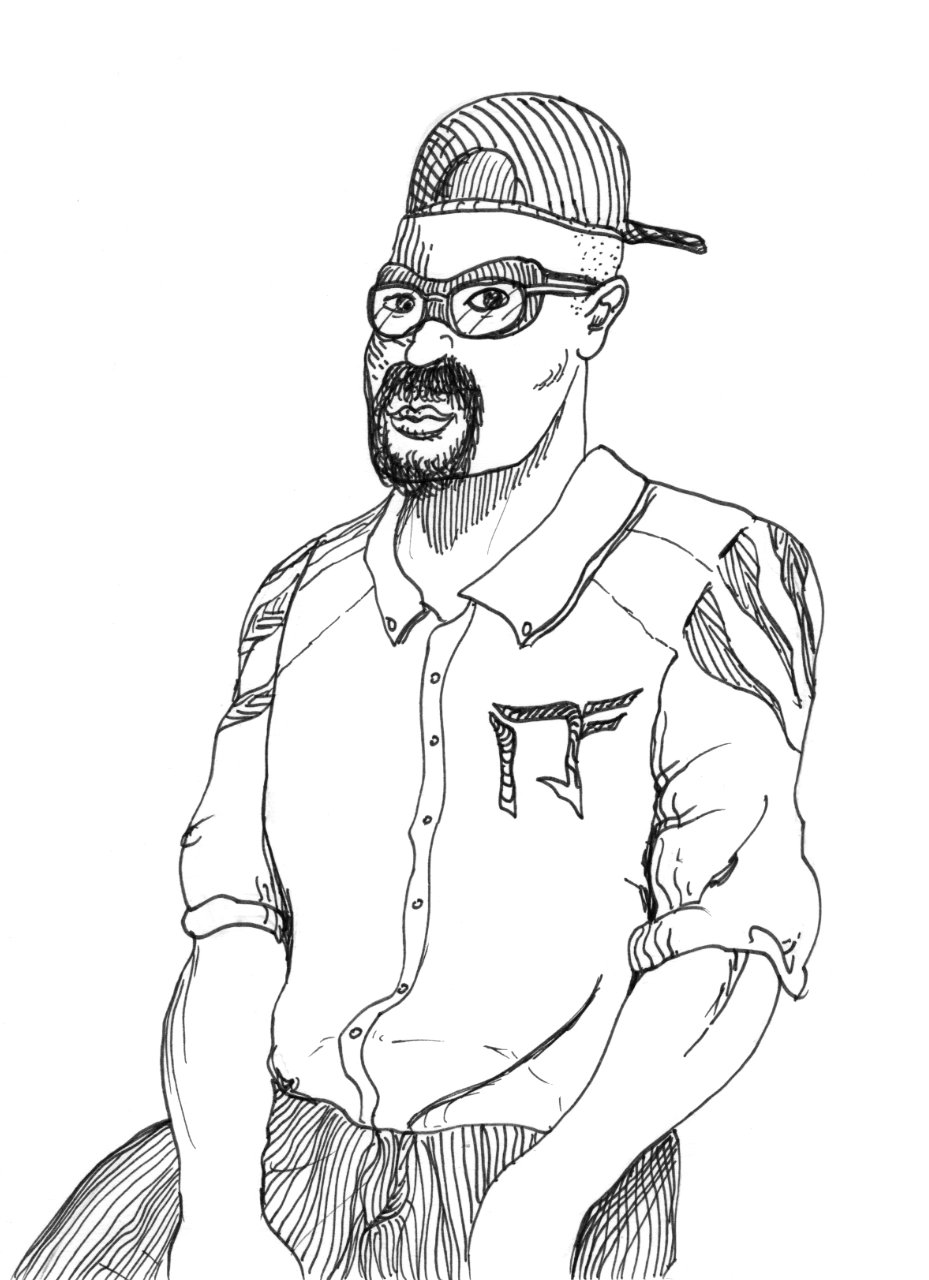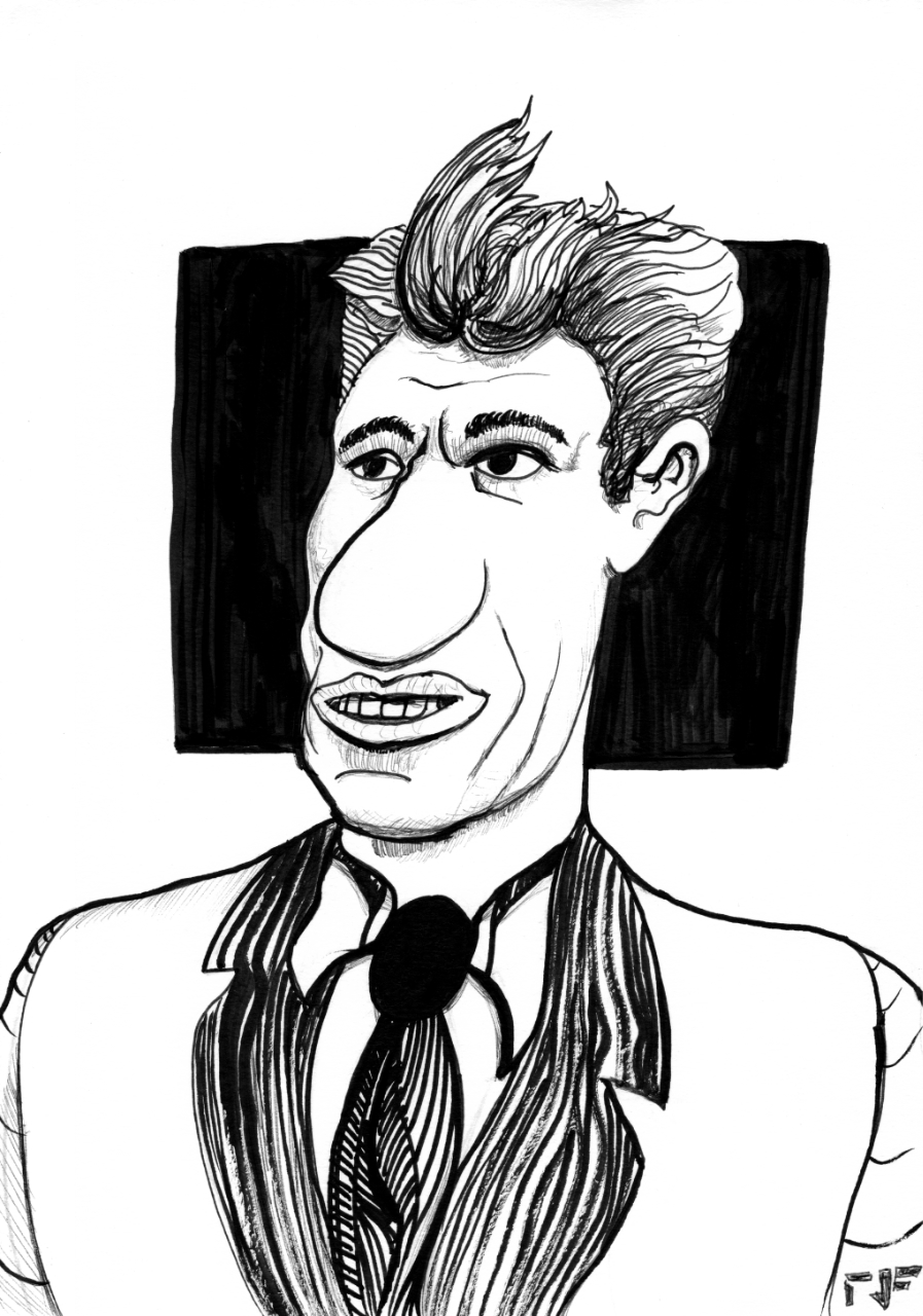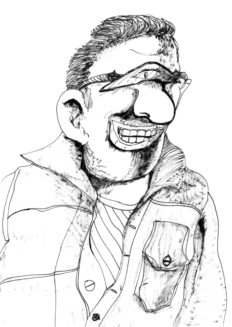 "Je suis caricaturiste. Si vous cherchez un portrait flatteur pour votre profil de rencontre, vous vous êtes trompé de galerie ! Ici, on étire les nez, on gonfle les oreilles et on travaille les textures et les hachures à l'encre."